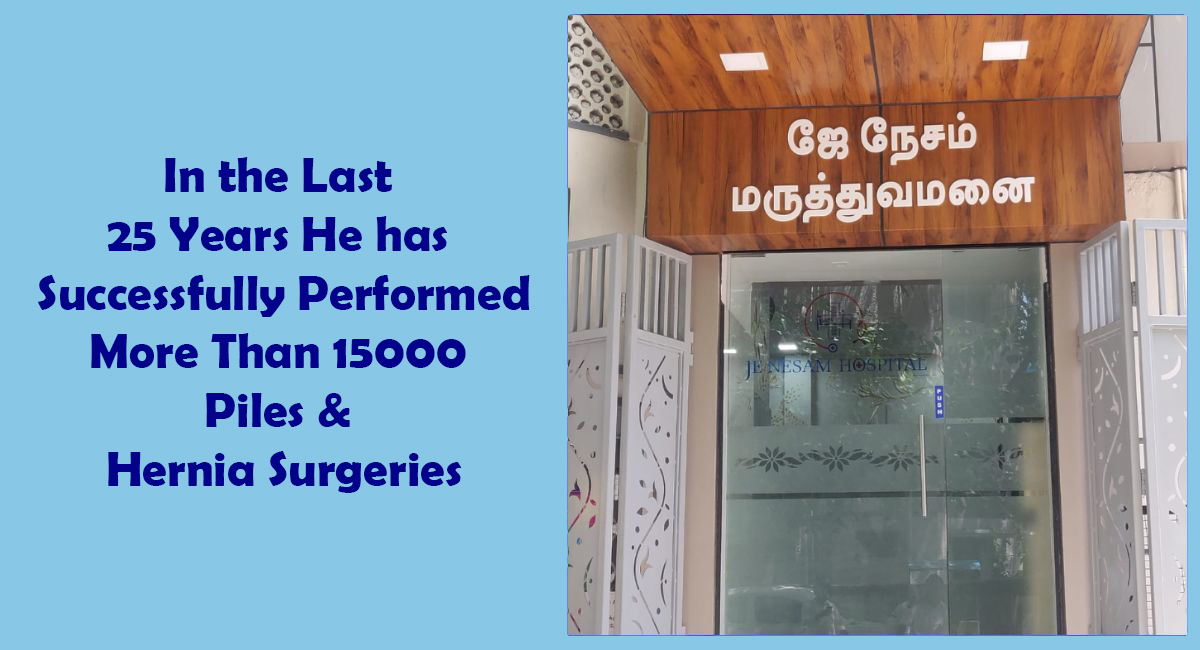 In the last 25 years he has successfully performed more than 15000 piles and hernia surgeries. He has worked in various leading Piles hospitals in Chennai and other major cities in India.